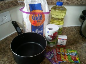 I really don’t remember learning sight words and I don’t remember ever hearing of them until recently when I started doing research on how to help my oldest learn to read (K is 4, almost 5). We have the first 3 collections of BOB books, thanks to a generous friend who gave them to us since her boys were done with them. K is doing great reading the first collection, and along with that reading, I wanted to start practicing sight words. My first thought was flash cards, but I know those can be rather boring. Then, in the Scholastic Book Club flyer we got at school last week, there was a POP for Sight Words game. It didn’t really explain what the “game” part of it was, but I was considering purchasing it. Then, browsing on Pinterest, a new fun way I kill time, I came across this Popcorn Word Activities, and remembered seeing that popcorn tub at Dollar Tree a couple weeks earlier. So, I decided that we would make it ourselves!