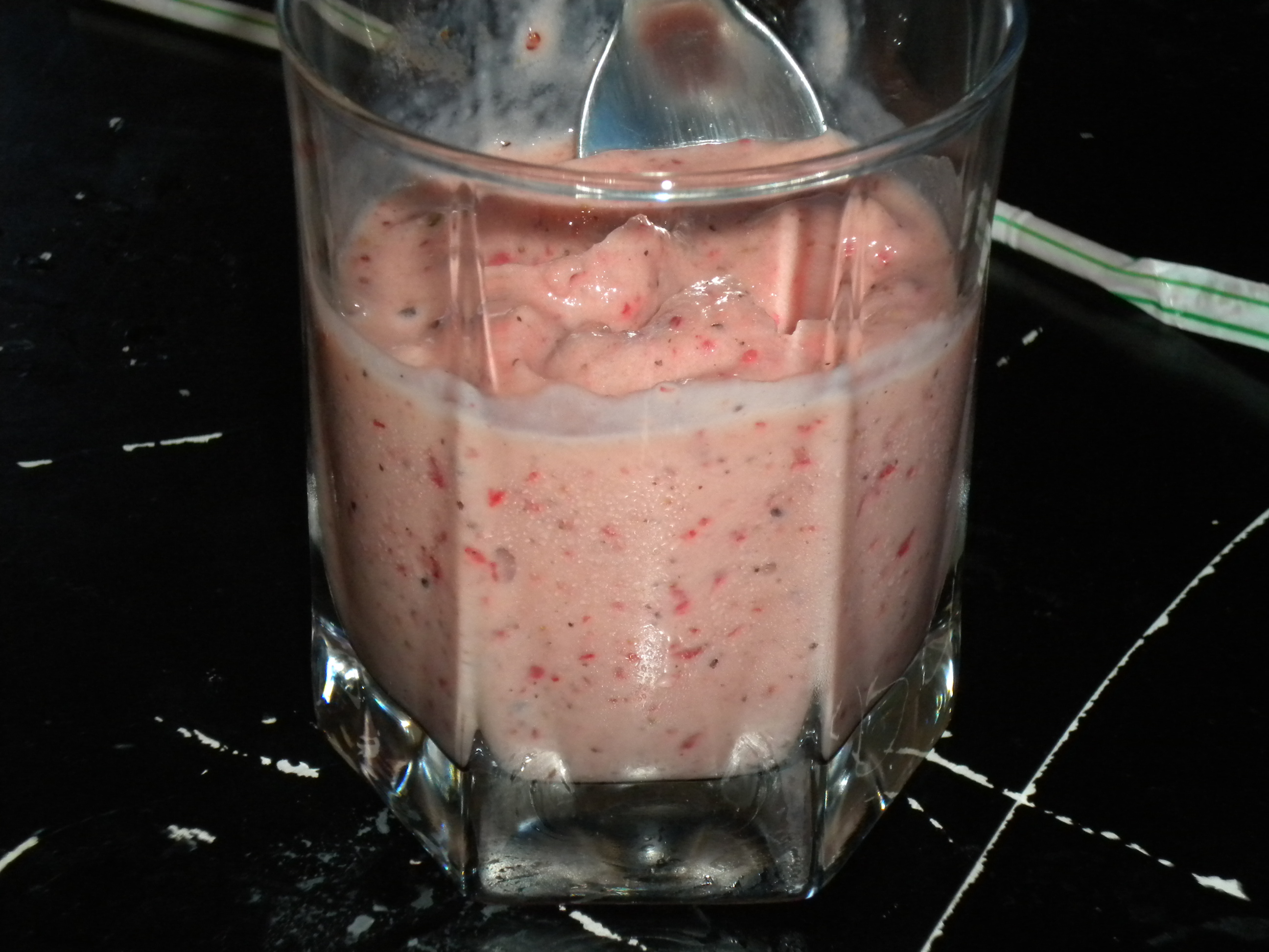 Last night was one of those nights where I was lost on what to cook. I had ideas, but needed to run to the store if I wanted to be able to make any of them. K was whiny after school, and it’s probably better that we didn’t go because it has been raining all evening. My girls were both getting hungry, so I decided to make them smoothies. I still have plenty of strawberries and blueberries in my freezer, I bought them back in June/July when both were really cheap.