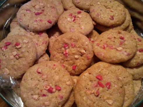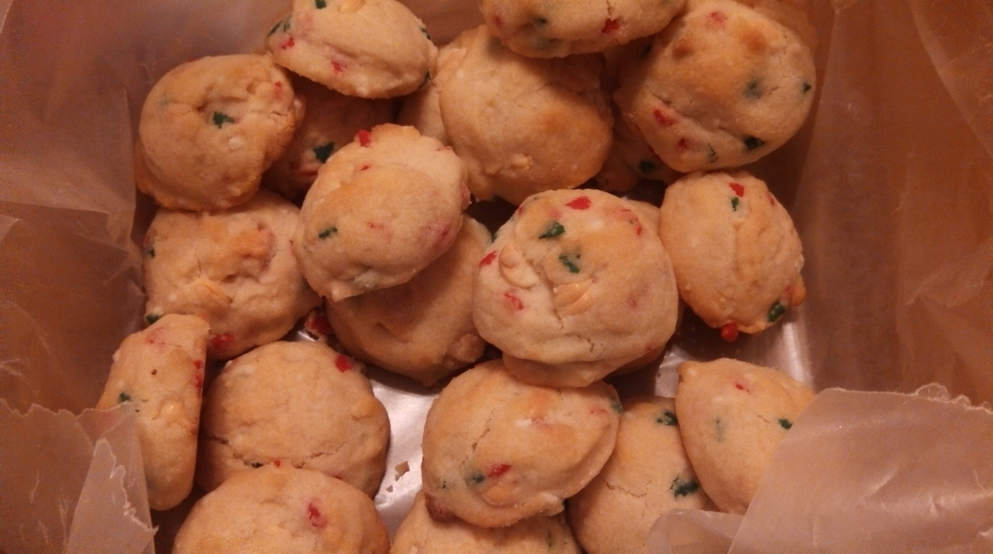 Gooey, stuck to the parchment paper, overly sweet coconut macaroons. Boo! It was too runny, probably because of the moisture content of the fresh coconut. The other half of that batter I put in the fridge overnight. The next morning, I put it in a small saucepan over medium-low heat, stirred constantly, for about 15 minutes. That yielded macaroons that looked like this:
