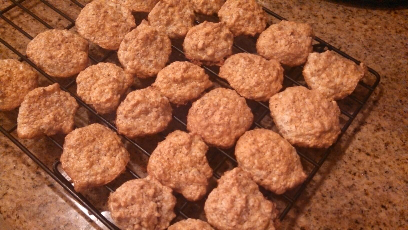 Then, it sat in the refrigerator a few days until I could get to it again! When I had time, I got out one container (each coconut yielded approximately 3 cups of grated coconut) and started on a coconut macaroon recipe that was straightforward and easy. And, the first pan turned out like this: