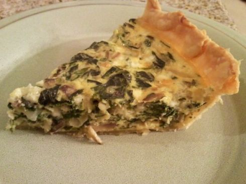Since pie crusts come 2 in a package, I had 1 crust I left from when I made Sweet Potato Pie at Thanksgiving time. I wanted to come up with a way to use some of the spinach I got in this week’s Bountiful Baskets, so I decided a quiche would be perfect. I’ve made quiche a lot of different ways, but also wanted to use up some ingredients in my fridge, so I used parts of a few different recipes I’ve used in the past. This is a great, versatile dish. If you feel like adding meat, add in some cooked crumbled bacon, or cooked diced ham. If you would like to make this gluten-free or don’t like pie crust, omit the crust, lightly grease a deep dish pie pan, and pour filling directly into the pan. The amount of cook time should remain the same, but you may want to check it earlier just in case.
