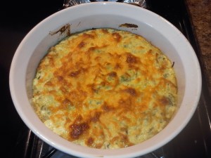 Pour mixture into a casserole dish and top with remaining cheeses. Bake in 350 F oven until cheese starts to brown, about 15-20 minutes. Serve with your favorite veggies or chips. We had tortillas chips with this batch.