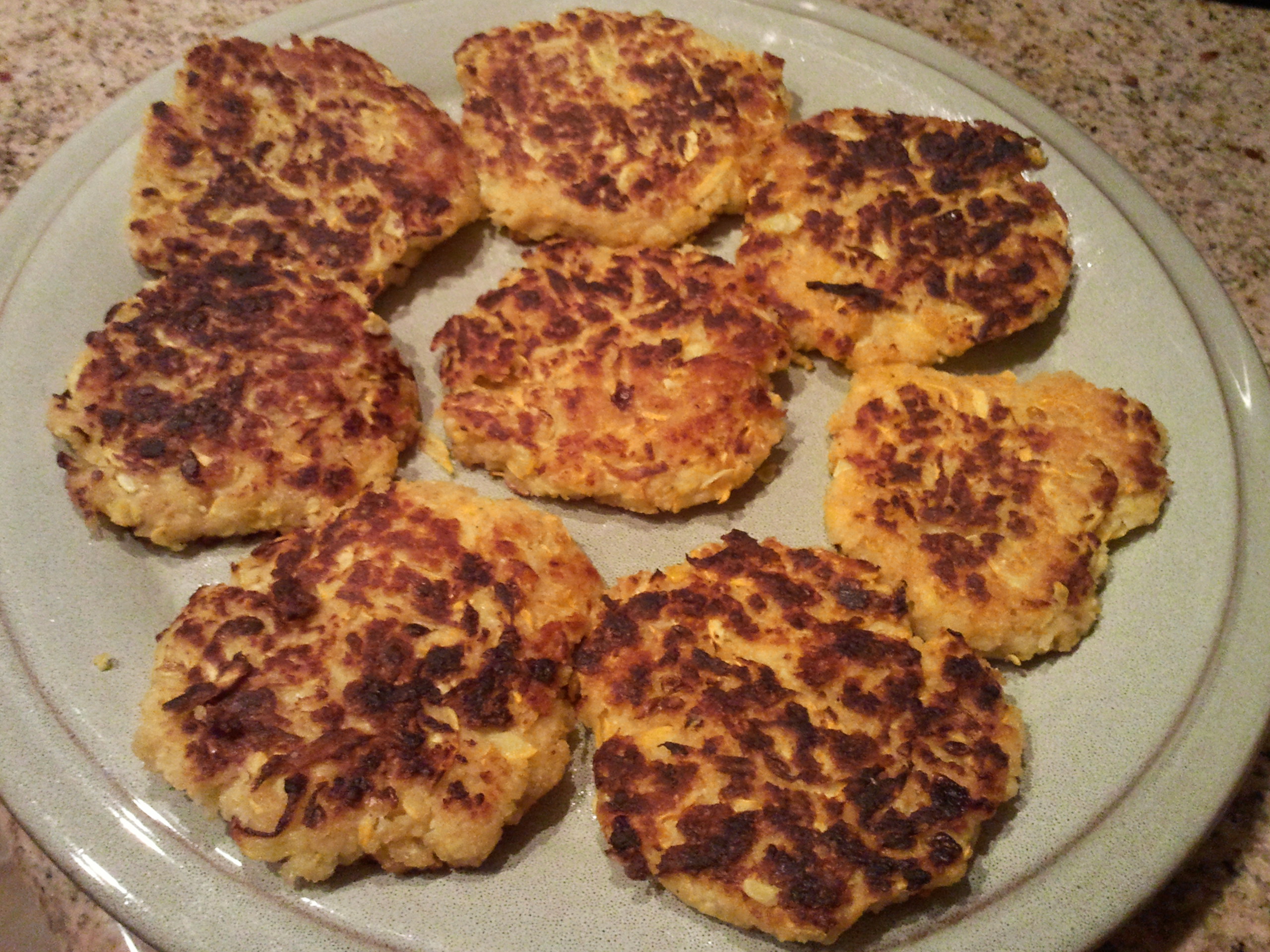 Yum, yum, yum! I had gotten a lot of yellow squash from Bountiful Baskets, and was trying to come up with ways to use all of it. I have made these Zucchini Fritters before, so figured I could do it with yellow squash too, but I didn’t have feta cheese. Then, I came across this recipe for Zucchini Cakes, using Parmesan cheese and Panko bread crumbs, so decided to give it a try. I was very pleased with the results, and will be making this again!
