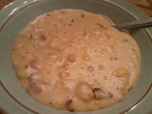 So, I usually make potato soup in the slow cooker, but I didn’t really think far enough ahead of time to get it going.  So, I decided to try a stove top version instead.  I looked up a few recipes, and came up with a mix between my normal recipe and some others I found.