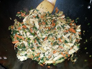 Vegetables to stir fry (I used carrots, water chestnuts, green onion, bok choy stems and leaves, snow peas, and asparagus)