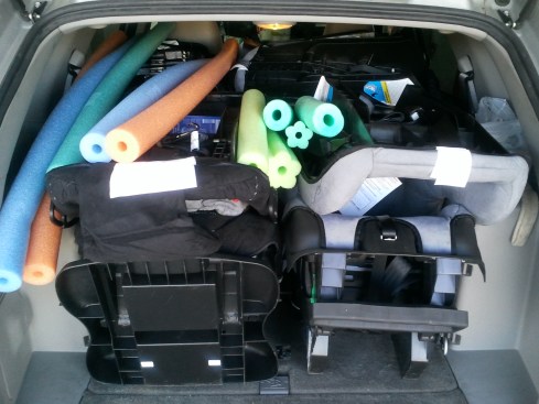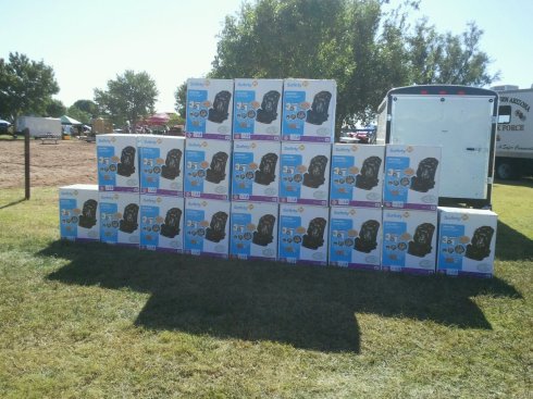 First, my car was loaded up with new car seats to have on hand in case we had to replace any during the seat check.  They just fit into the back of my Chevy Equinox!
