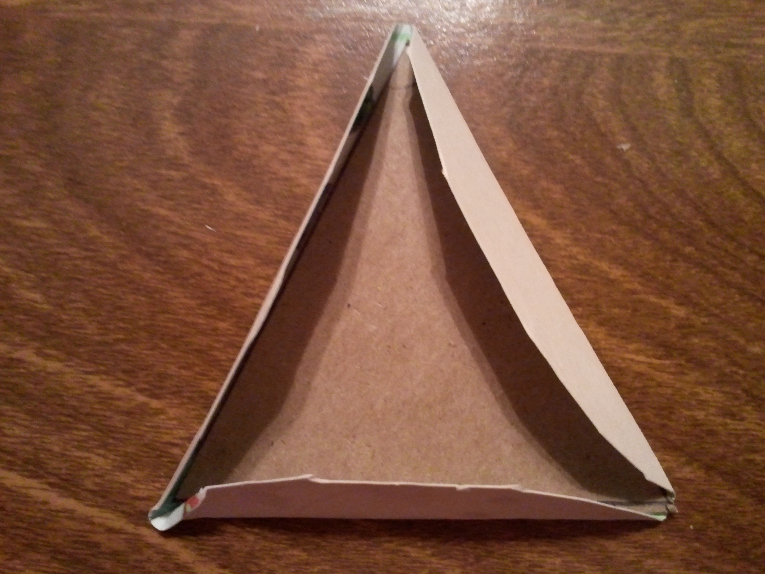 Put triangle in middle of circle and fold the circle over the edges of the triangle.