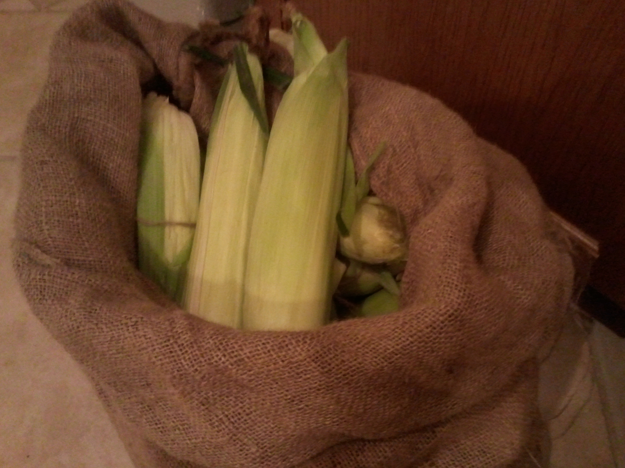 You may remember about a month ago, I shared a burlap sack with 5 dozen ears of sweet corn from Apple Annie’s Produce &  Pumpkins with a friend.