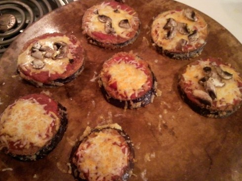 2 large eggplants, sliced lengthwise into 1/2″ slices, outer peel removed, if desired