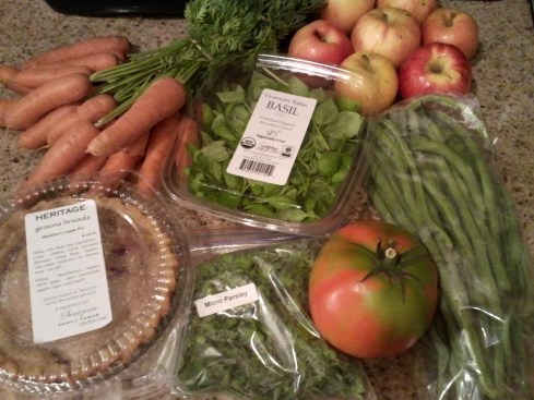 This week, I had picked a head of cabbage for my FarmBox. I had thought about making Stuffed Cabbage Leaves or Bierocks, but decided that I wanted to try to make something different. I was initially thinking of doing it all in a skillet, but then my uncle asked if I had tried grilled cabbage, and I started looking at recipes related to that. I came across a recipe for Grilled Cabbage and Potato Packets, and decided to expand on it some, incorporating parts of the skillet recipe I had found. Of course, as it came time closer to dinner, a storm rolled in, but it stopped soon enough to give me time to fire up the grill for this. It was a bit of prep work, but I was glad for the food processor from my parents from Christmas. I used it to shred the cabbage and carrots, and to slice the potato rounds.