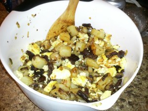 I used the large tortillas from Bountiful Baskets, and assembled them like I did for the Steak, Egg, & Potato Burritos. My husband commented that these were the best breakfast burritos I’ve made for him yet, and wanted to know what I did differently. Must have been those wonderful Hatch chiles!