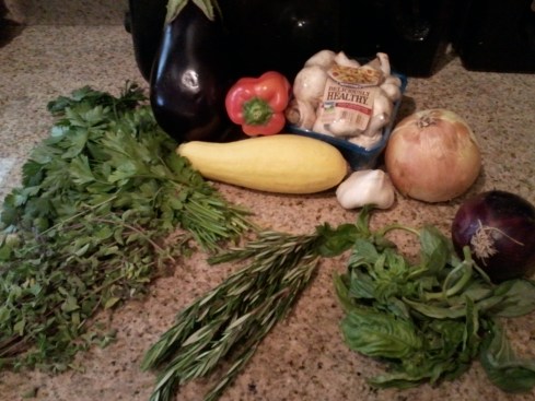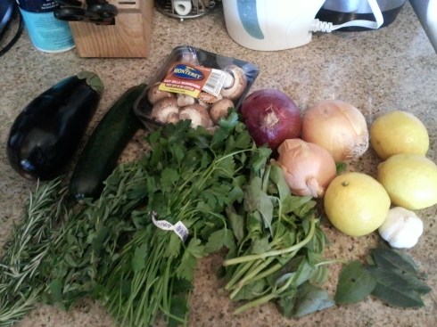 This week, it was Italian flat parsley, oregano, eggplant, red pepper, yellow squash, rosemary, mushrooms, garlic, yellow onion, red onion, and basil. I’m still undecided on what to make with this weeks items, but I’m thinking I want to grill the eggplant, then maybe add sliced tomatoes and some mozzarella cheese and broil to melt the cheese.