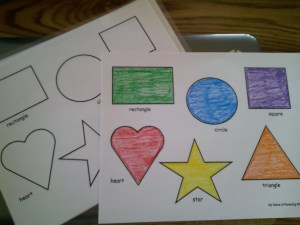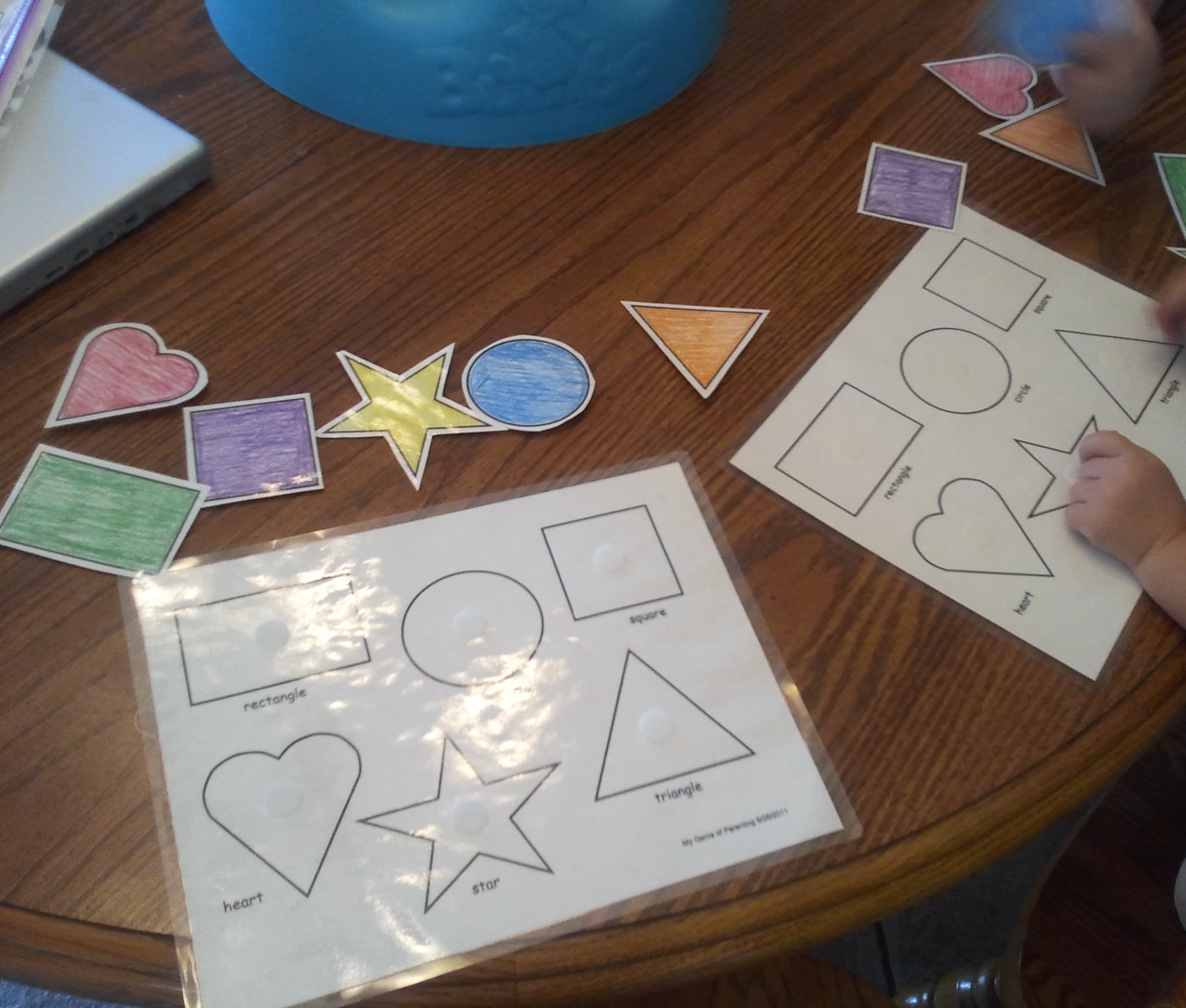 Neither of us has a background in early childhood education and we aren’t following any type of curriculum. Our kids are just 2, so we don’t want to push them too hard and we want to have a lot of fun while we learn. We decided we will meet once a week to do some activities together. Today’s focus was on color recognition matching, matching pictures, and the letter A.