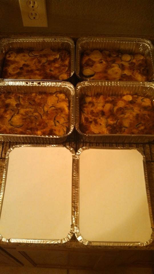 Edited to add: Here are a couple of pictures of my prep and finished product of Summer Squash, Sausage, and Egg Bakes that I made. I got foil pans with lids to use to bake them in and then freeze.