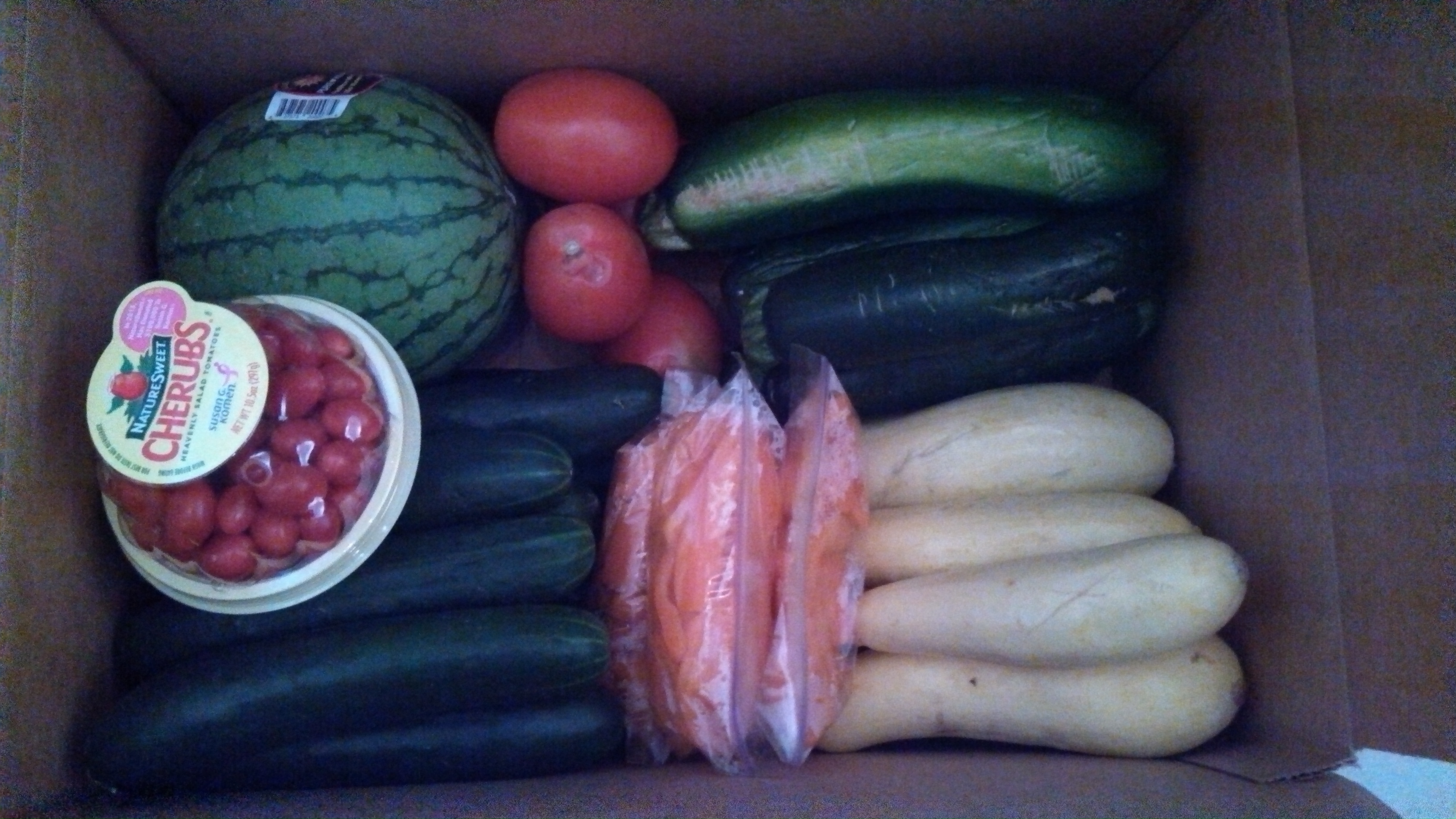 This was definitely more produce than I could use, so I found 2 friends interested in some produce, and made them each a box like this: