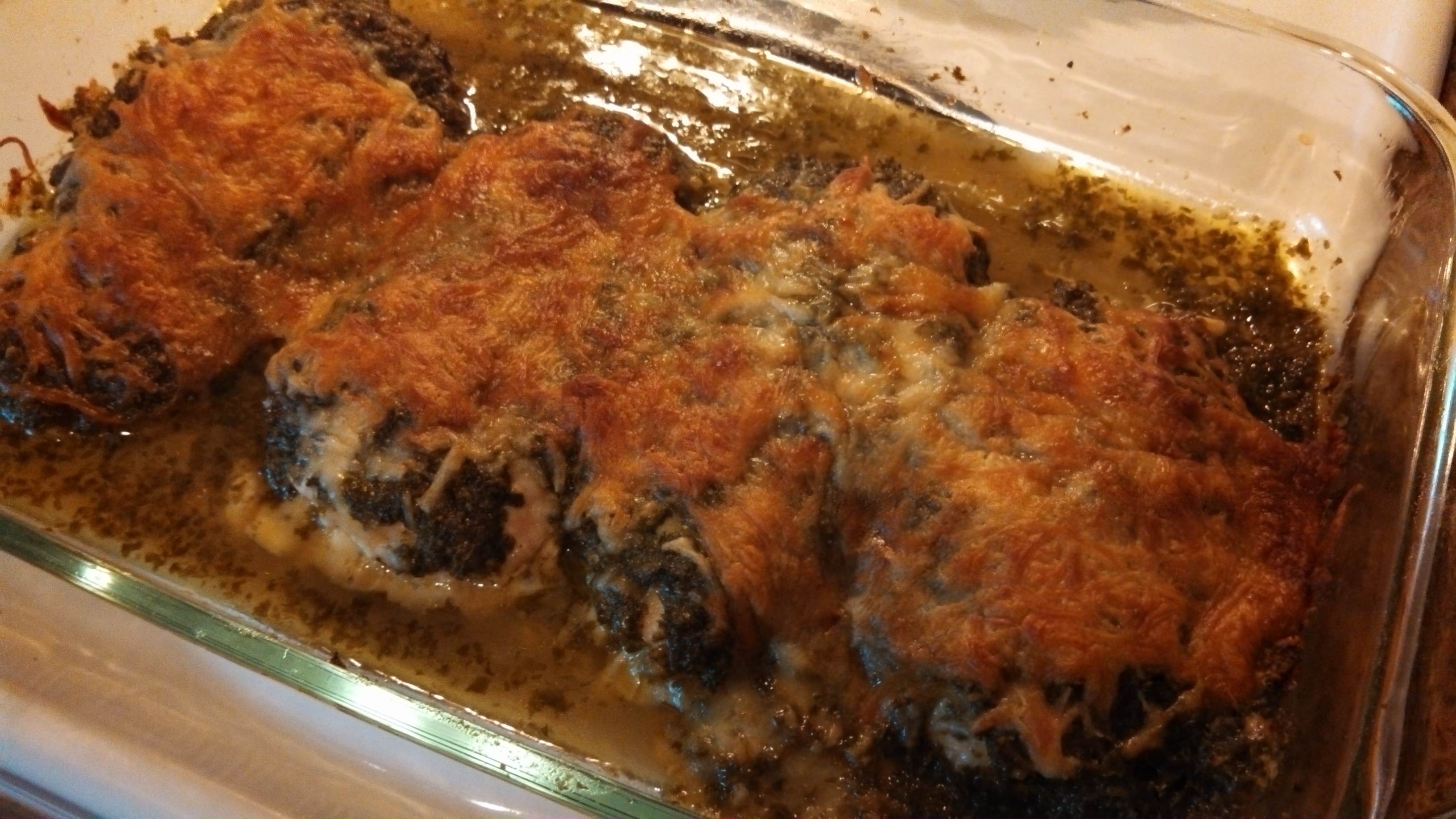 After Katie was born, my mom came and cooked for us and gave me some easy recipes.  One of the recipes was an Easy Parmesan Chicken; place chicken in a baking dish, cover with tomato sauce, cover with foil, bake, sprinkle with mozzarella and Parmesan cheeses, bake again until the cheese melts.  I had pesto in the refrigerator to use, so I followed the same instructions as my mom’s recipe, just using  pesto instead of tomato sauce.  It turned out really good, both my kids even liked it!  I served it over pasta.