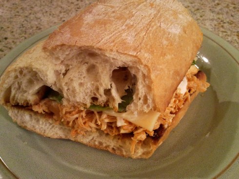 A while back, I saw a pin on Pinterest of a shredded buffalo chicken sandwich, and the chicken had been cooked in the slow cooker. A friend had recently made it too, so I know it was something to try out. It also reminded me of a Buffalo Chicken Pizza that I haven’t made in a while. I also had a loaf of ciabatta bread in my freezer still, so it was a tough choice to make pizza or to make sandwiches. So, I made both!