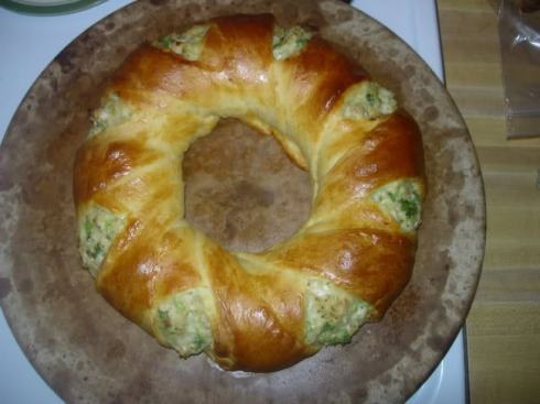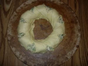 Pour mixture into a 2 quart round casserole dish. Place the pie crust over the top of the mixture and press crust into the sides of the dish. Cut vents in the crust.