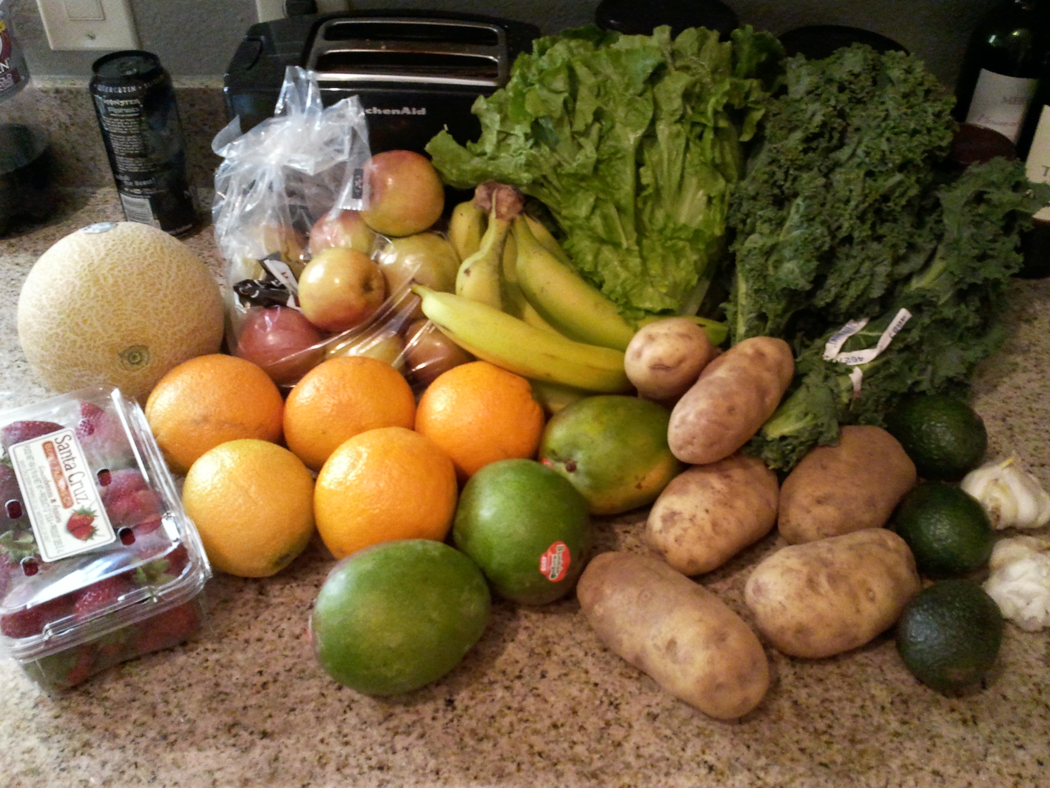 This week, we got cauliflower, tomatoes, mangoes, peaches, lettuce, bananas, plums, cantaloupe, green grapes, strawberries, and limes. Plenty of fruit! I’m most excited about the cauliflower, I’ve learned many ways to cook cauliflower now that I’m excited to be able to use it again. I’ll probably end up at least making a pizza crust, probably roast some, then eat the rest raw. It’s my favorite veggie! With the limes, I want to make Fiesta Lime Chicken, which I haven’t had in a long time. I may also attempt a lime-ade of some kind, maybe strawberry lime-aid? We’ll see. The plums are amazing, and I may need to come up with a creative use for the peaches. Or, they may go in a smoothie with the mangoes and a banana.
