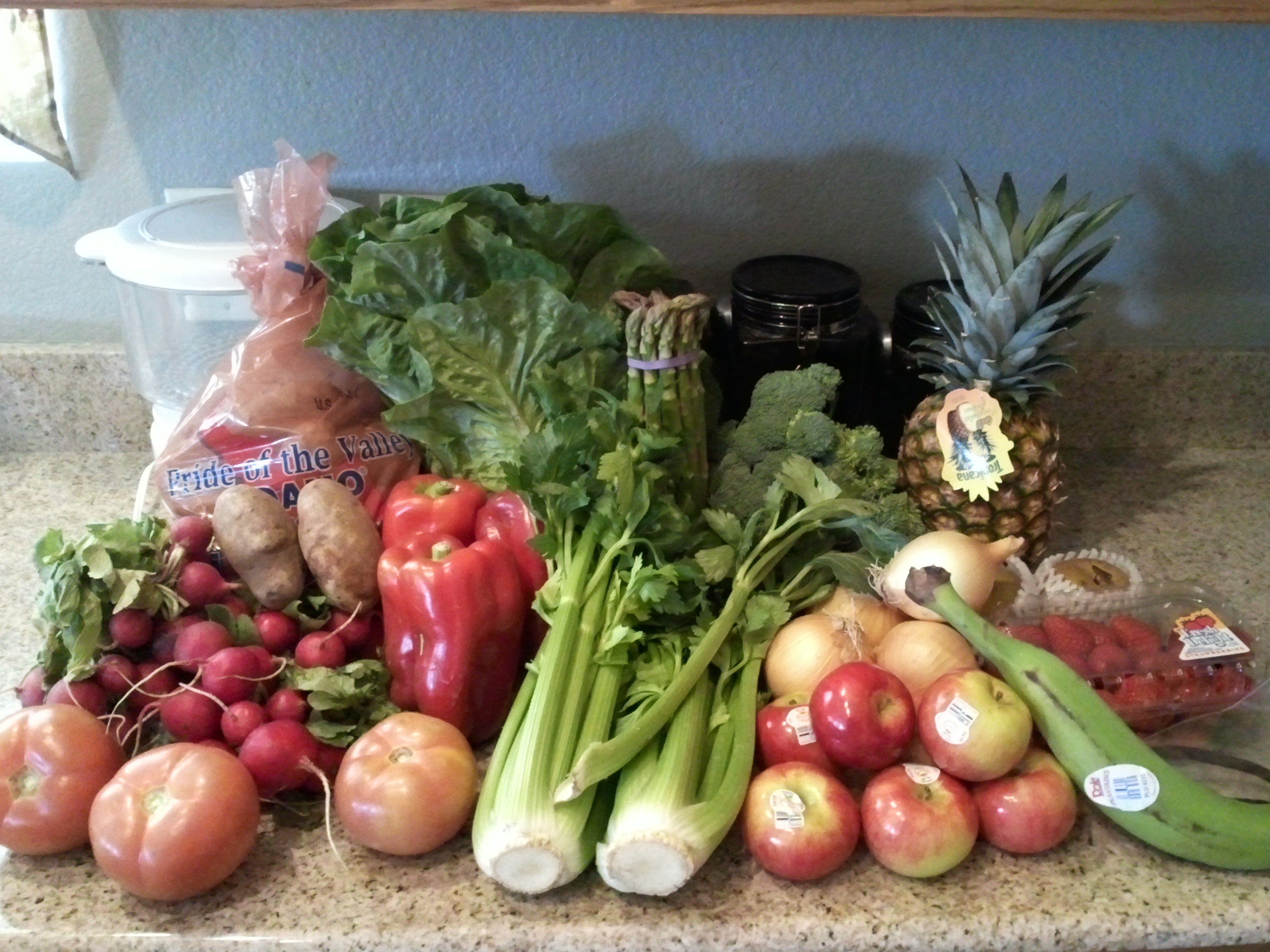 I contributed for the conventional basket for $15, the Italian themed veggie pack for $8.50, and 5 loaves of sourdough bread for $10, plus the $1.50 handling fee, for a total of $35.